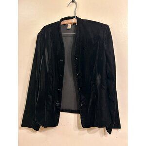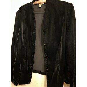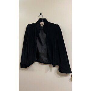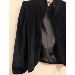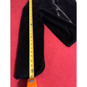 Vintage Black Velvet Jacket Sz 11/12 Open Front Braided Trim Lined Blazer Form