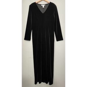 Vintage Black Velvet Maxi Dress Size 12 Holiday Gothic Romantic Witchy Evening