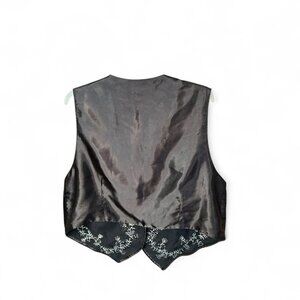 Vintage Black Velvet Satin Beaded Embroidered Floral Vest Large