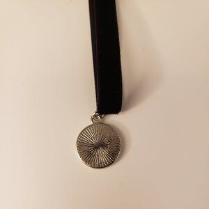 Vintage Black Velvety Yin Yang Charm Adjustable Ribbon Choker Necklace 90s Y2K