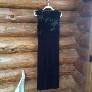 Vintage Black Whimsigoth Sleeveless Liquid Fabric Metallic Maxi Dress Size 14