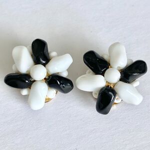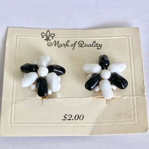 Vintage Black & White Beaded Clip On