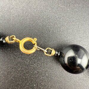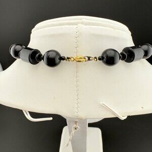 Vintage Black & White Beaded Necklace Chunky Statement Jewelry With Gold-Tone Cl