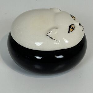 Vintage Black & White Cat Lidded Porcelain Trinket Dish