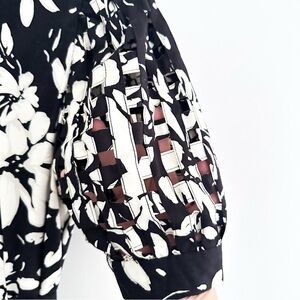 Vintage / Positive Additude Black & White Floral Cottagecore Midi Dress - Size Large (based on measurements)