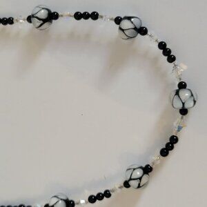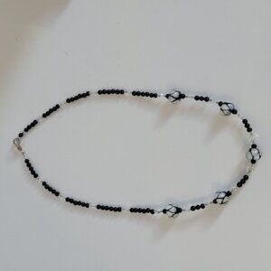 Vintage Black & White Glass Beaded Necklace With silver Clasp