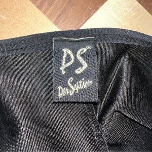 Vintage Black & White PerSeption Mini Dress with Criss Cross Detail size Large. Vintage size so fits more like a medium. Made in the USA. Polyester and spandex. Machine washable. Slight dye crocking in the armpits.