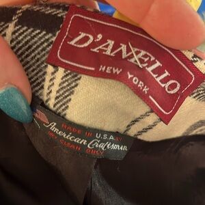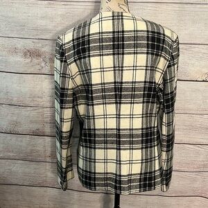Vintage Black & White Plaid Blazer Wool Blend Collarless Made in USA Size 10