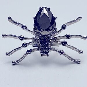 Vintage Black Widow Spider Rhinestone Adjustable Ring