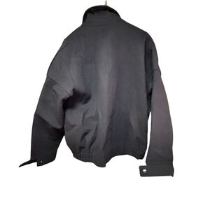 This vintage black bomber jacket features a warm wool blend and retro style.