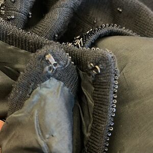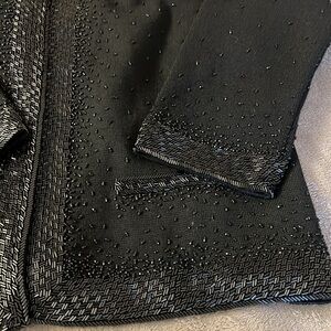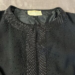 Vintage Black Wool Embellished Open Front Cardigan Jacket Long Sleeve Si…