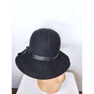 Vintage Black Wool Felt Hat -Made in USA Fedora Hat - Womens Wool Hat