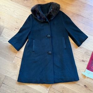 This is a gorgeous wool jacket has all the vintage vibes. With its cape like design and beautiful fur collar (not vegan) and satin silk lining. So many beautiful details! I can hardly let it go but it’s time! This coat is ready for an evening out!
