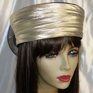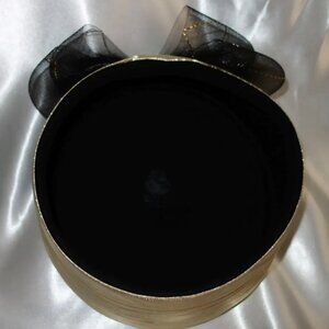 In excellent vintage condition, one Vintage Black Wool and Gold Lame' Pillbox Hat.