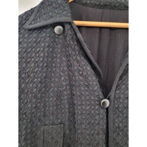 Vintage Black Woven Fringed Poncho With Buttons & Arm Holes