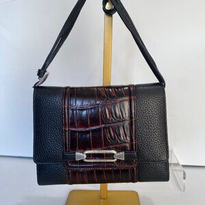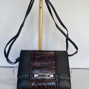 Vintage Black and Brown Brighton Organizer Crossbody Shoulder Strap Purse EUC