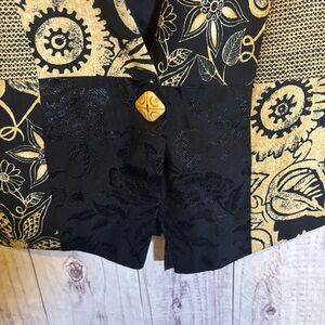 Stylish vest with intricate black and gold patterns. Perfect for adding a touch of elegance to any outfit.