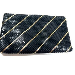 Vintage Black and Gold Stripe Mesh Clutch Mid Century Purse