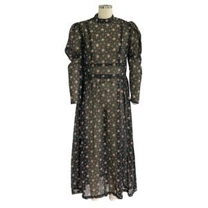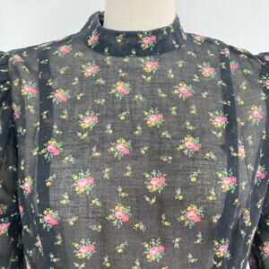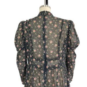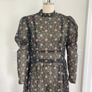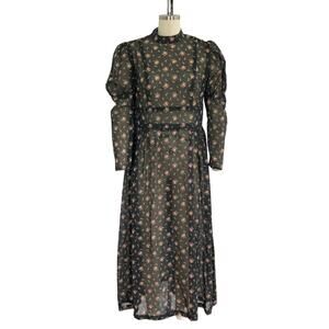 Handmade vintage sheer black and pink floral prairie dress. Zipper closure in back. Has signs of handmade imperfection on the zipper. See photos. Perfect witchy dark Romantic Whimsygoth fall dress.