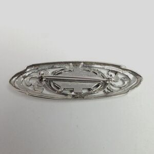 Vintage Black and Silver Tone Oval Shape Brooch, Cabochon Center, Unisex Estate
