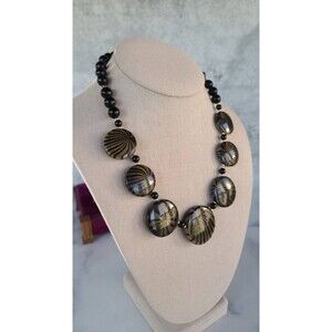 The necklace measures 19" long and largest bead measures 1.25" x 1.25"