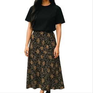 Vintage Black and Tan Floral Leaf Filagree Skirt