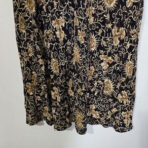 This elegant skirt features a beautiful black and tan floral design, perfect for any occasion. Pair it with your favorite top for a chic look. witchy gypsy romantic maxi