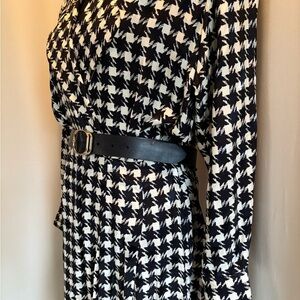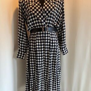 Vintage Black and White A-Line Wrap Dress with Cuffed Sleeves