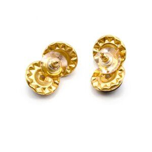 Vintage Black and White Double Circle Earrings, Black Faceted Rivoli Crystals Surrounded by Channel Set Halo, Stud Post