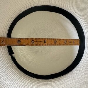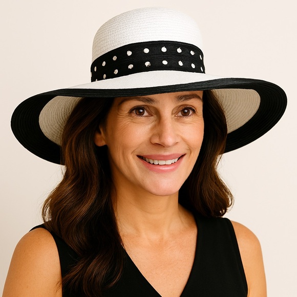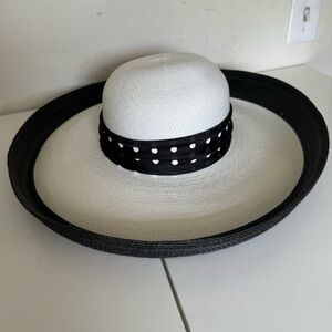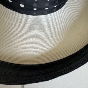 Vintage Black and White Woven Wide Brim Hat with Polka Dot Band