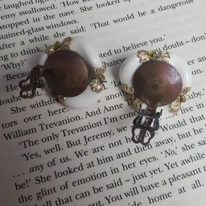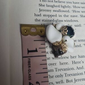 Vintage Black and White Plastic Cluster Clip On Earrings with faux gold