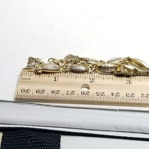 Vintage Black and Gold Tone Damascene Panel Charm Bracelet, Estate
