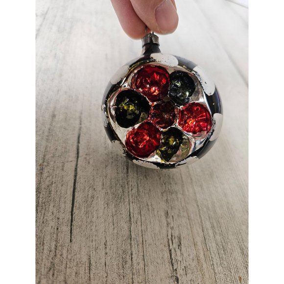 Vintage Black indent reflector ball silver ornament glass Xmas tree