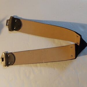 EDGY LEATHER BLACK BELT EDGY UNIQUE PUNK VINTAGE MOD WIDE BELT METAL CLASP VINTAGE
