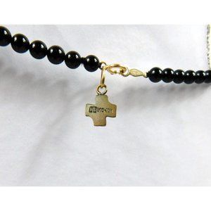 Vintage Black/Gold Tone Beaded Necklace 14K Spring Ring Clasp SEE DESCRIPTION