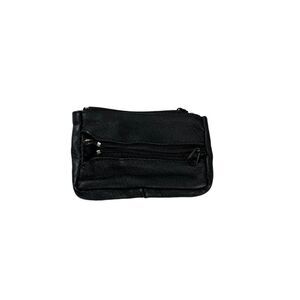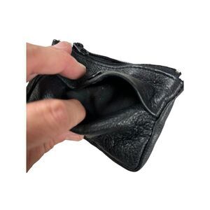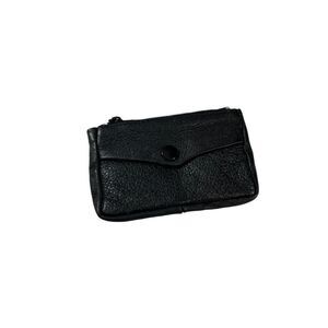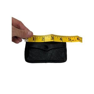 Compact and functional, this vintage black leather coin purse features a secure zipper and snap closure. Ideal for carrying coins and small essentials.