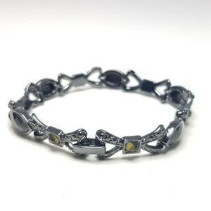 Vintage Black Rhinestone and Dark Gray Metal Bracelet, Goth Vibes, Estate