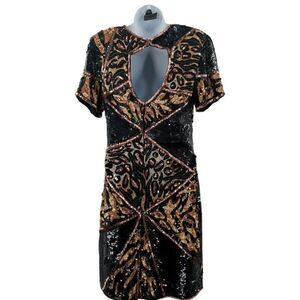 Vintage Black Silk Animal Patterned Dress with Black and Gold Sequins | Tag Size Small (6-8)