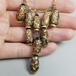 Vintage Black and Brown Glass Bead Drop Fringe Necklace, 16 Inch Chain