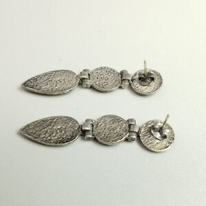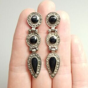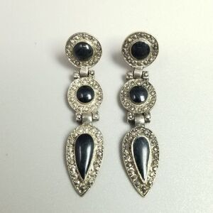 Vintage Black and Silver Tone Dangle Stud Earrings, 80s 90s Style, Estate