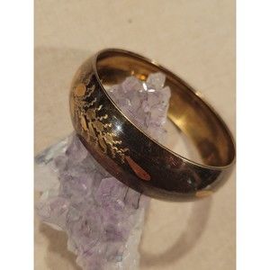 Vintage Blackened Oxidized Etched Floral Design Brass Bangle Bracelet