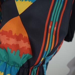 Vintage Blair Blouse Womens Size XL Black Southwest Geometric No Tuck Blouson 80