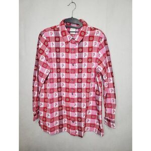 Vintage Blair Embroidered Button Up Top Christmas Holiday Candy Cane Peppermint