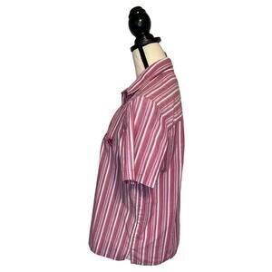 Vintage Blair Embroidered Floral Shirt Womens Sz Small Striped Pink Short Sleeve
