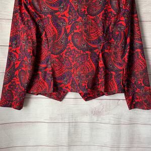 Vintage Blair Red Paisley Button Up Blouse Long Sleeve V-Neck Size 12P