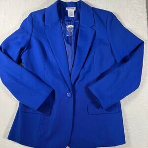 Vintage Blair Royal Blue Blazer Size 12 Misses - 1 button in front - faux pockets - comes with spare button - great pre-owned condition!