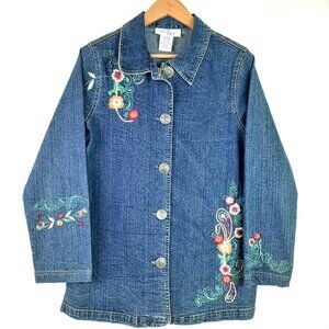 Vintage Blair Two Twenty Collection Long Blue Jean Jacket Embroidered Denim M