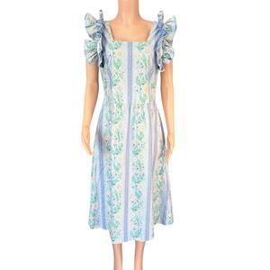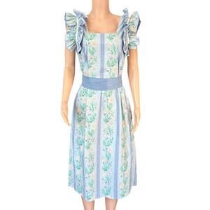 Vintage Blair Woolverton Floral Fit & Flare Midi Dress Statement Shoulder Large