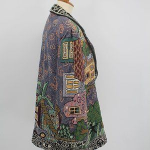 Vintage Blanket Jacket Knit Metal Coin Button L