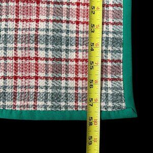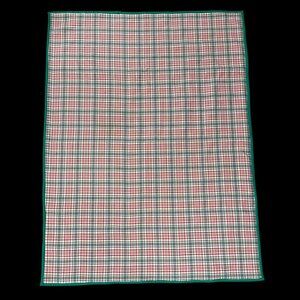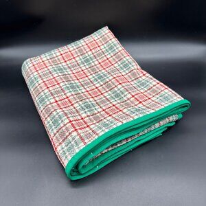 Vintage Blanket Tablecloth Handmade 1960s Green Red Plaid Polyester Christmas